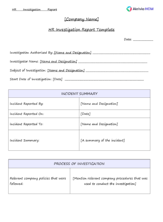 An employee investigation template contains all the essential information like the details of the issue that was reported, how the investigation was undertaken and evidence and testimonies that were collected. This ensures a fair investigation is conducted before necessary action is taken.